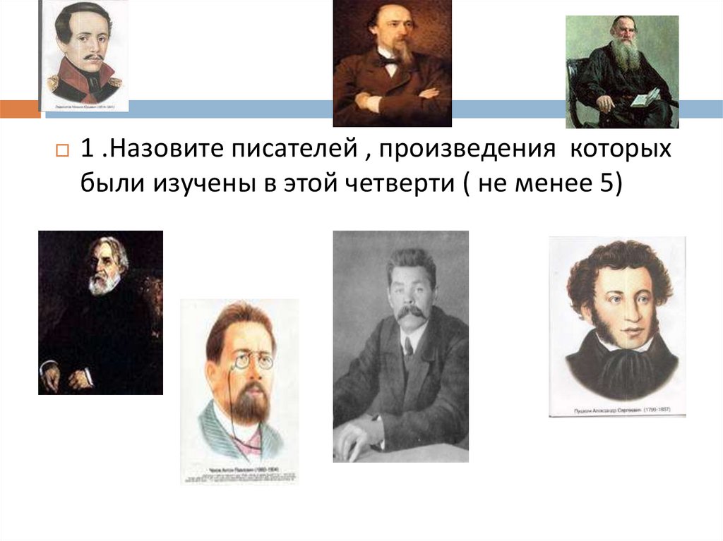 1 .Назовите писателей , произведения которыхбыли изучены в этой четверти ( не менее 5)