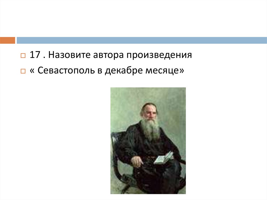 17 . Назовите автора произведения« Севастополь в декабре месяце»