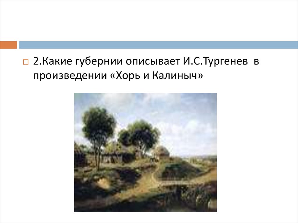 2.Какие губернии описывает И.С.Тургенев впроизведении «Хорь и Калиныч»