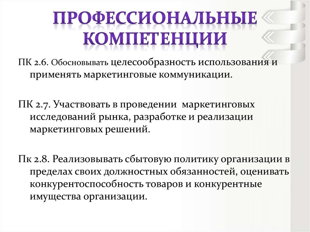 ПК 2.6. Обосновывать целесообразность использования иприменять маркетинговые коммуникации.