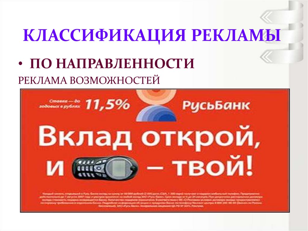 КЛАССИФИКАЦИЯ РЕКЛАМЫ• ПО НАПРАВЛЕННОСТИ