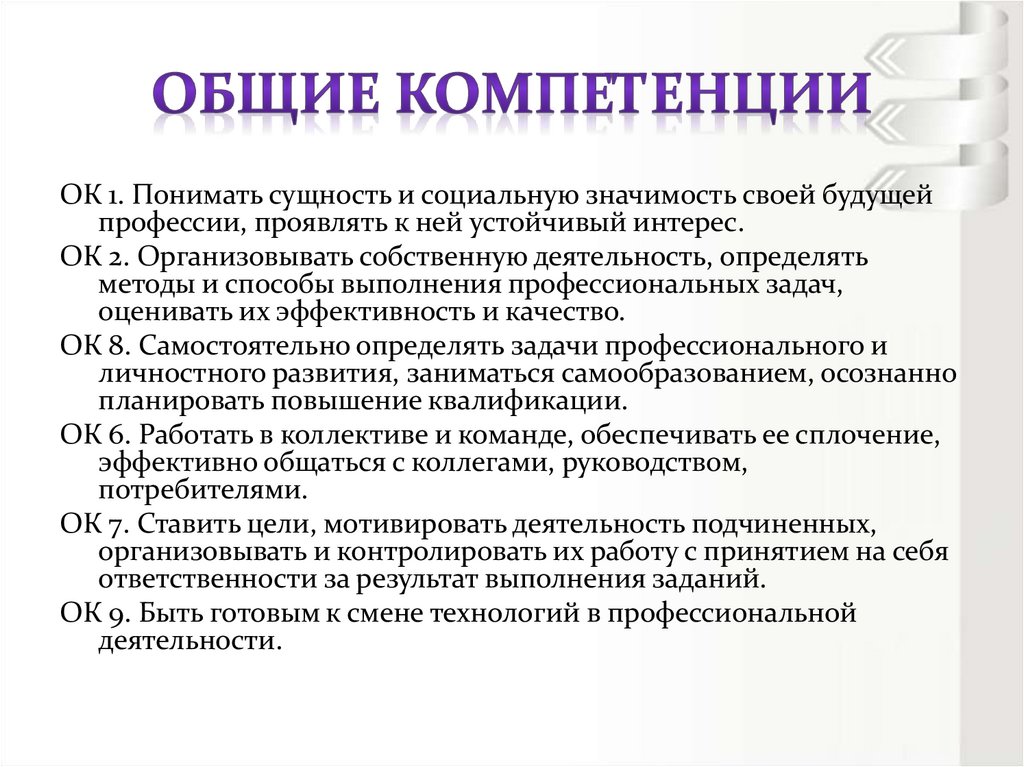 ОК 9. Быть готовым к смене технологий в профессиональной
