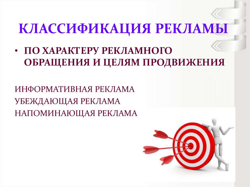 КЛАССИФИКАЦИЯ РЕКЛАМЫ• ПО ХАРАКТЕРУ РЕКЛАМНОГО