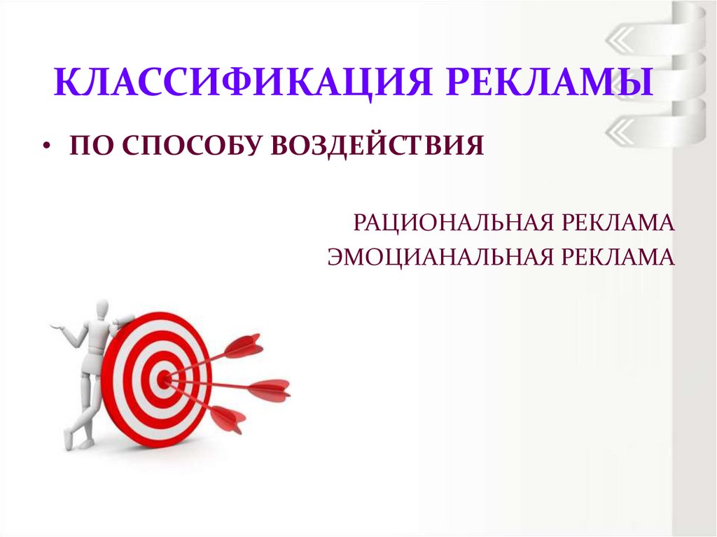КЛАССИФИКАЦИЯ РЕКЛАМЫ• ПО СПОСОБУ ВОЗДЕЙСТВИЯ