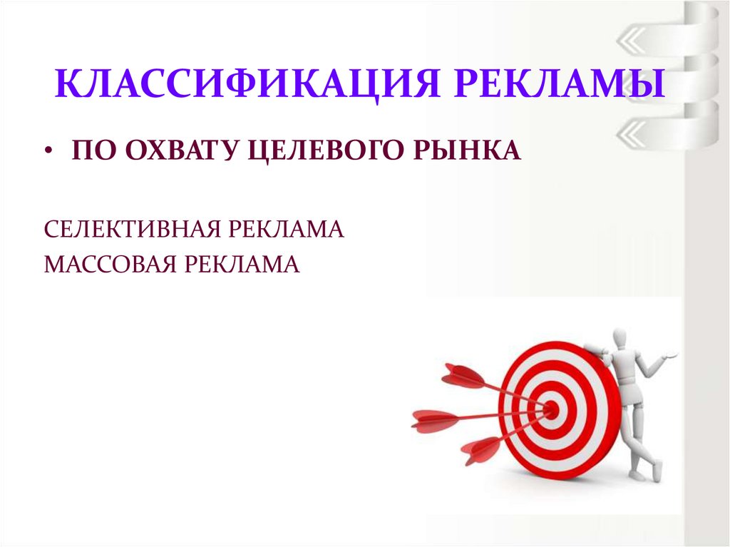 КЛАССИФИКАЦИЯ РЕКЛАМЫ• ПО ОХВАТУ ЦЕЛЕВОГО РЫНКА