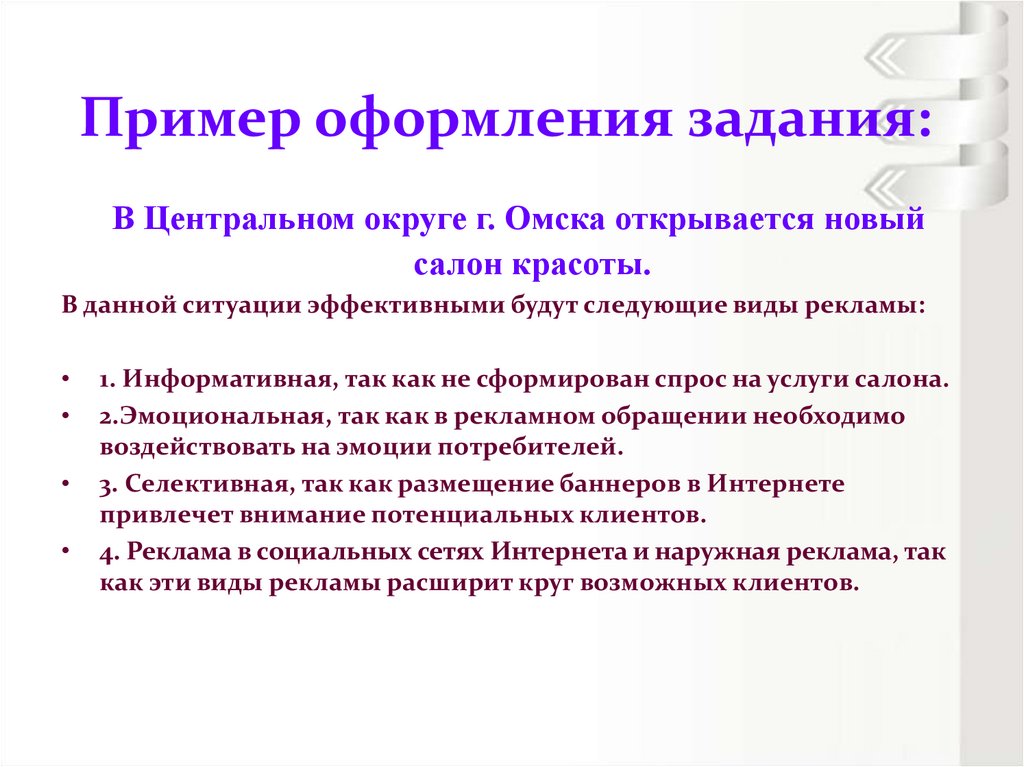 Пример оформления задания:В Центральном округе г. Омска открывается новый