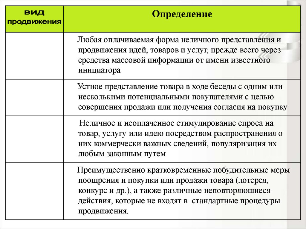 ОпределениеЛюбая оплачиваемая форма неличного представления и