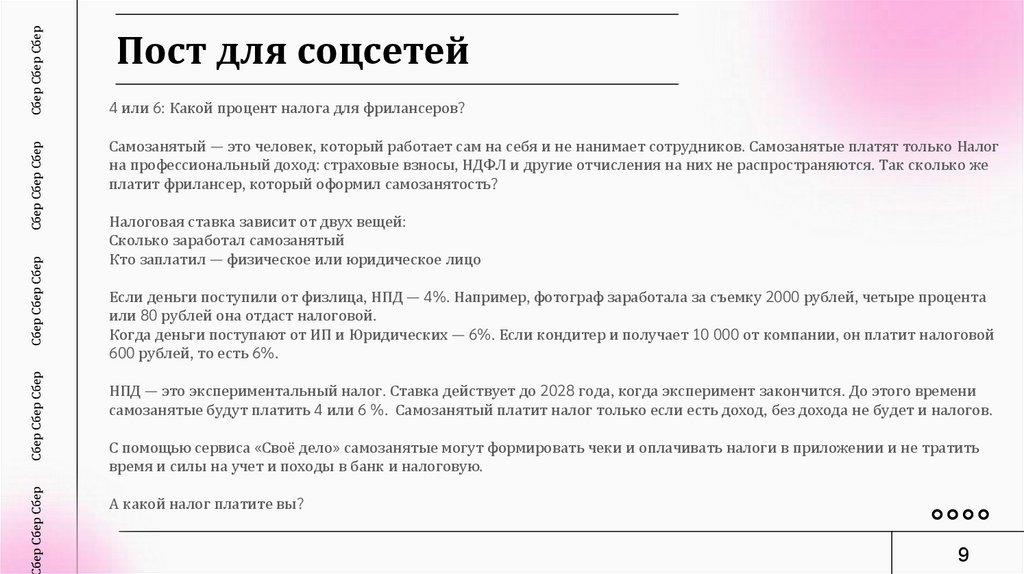 самозанятые будут платить 4 или 6 %. Самозанятый платит налог только если есть доход, без дохода не будет и налогов.