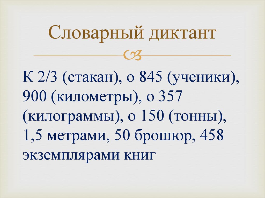 Словарный диктантК 2/3 (стакан), о 845 (ученики),