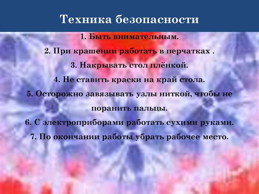 Технология выполнения узелковогобатика