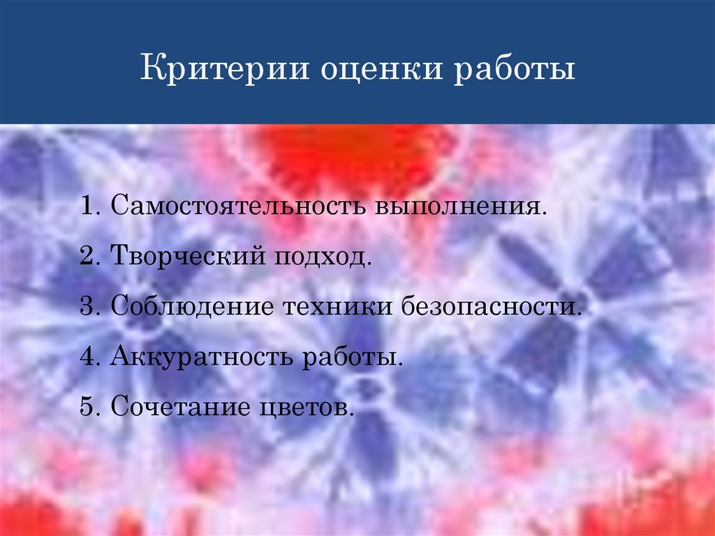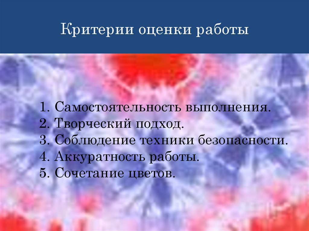 Критерии оценки работы1. Самостоятельность выполнения.
