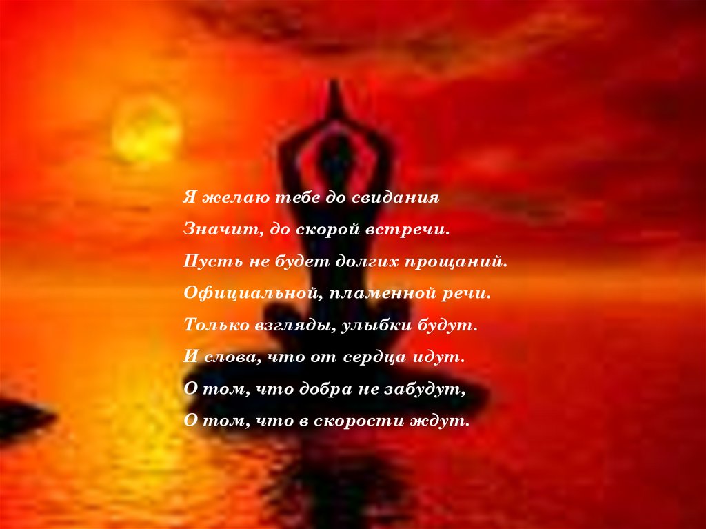 Я желаю тебе до свиданияЗначит, до скорой встречи.