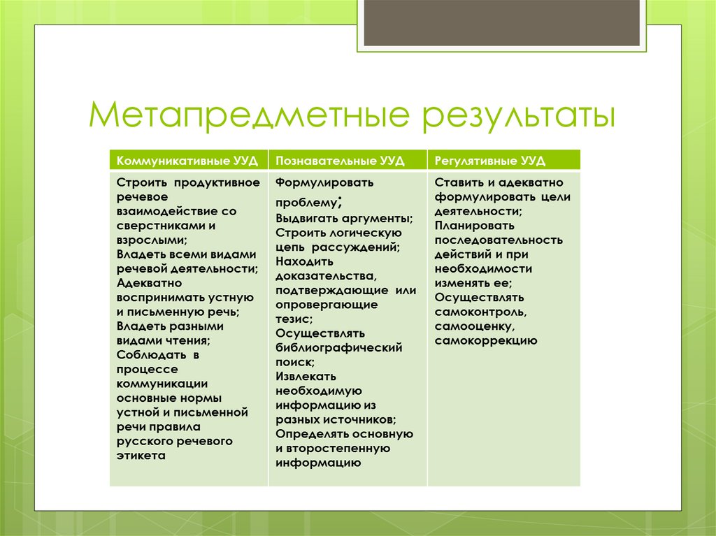 метапредметных результатов