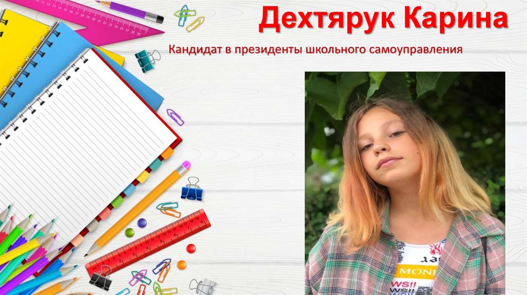 Дехтярук КаринаКандидат в президенты школьного самоуправления