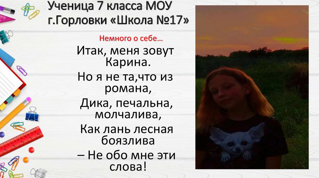 Ученица 7 класса МОУг.Горловки «Школа №17»