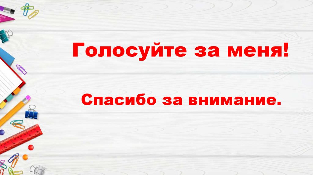 Голосуйте за меня!Спасибо за внимание.