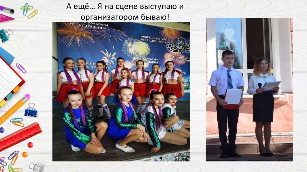 А ещё… Я на сцене выступаю иорганизатором бываю!