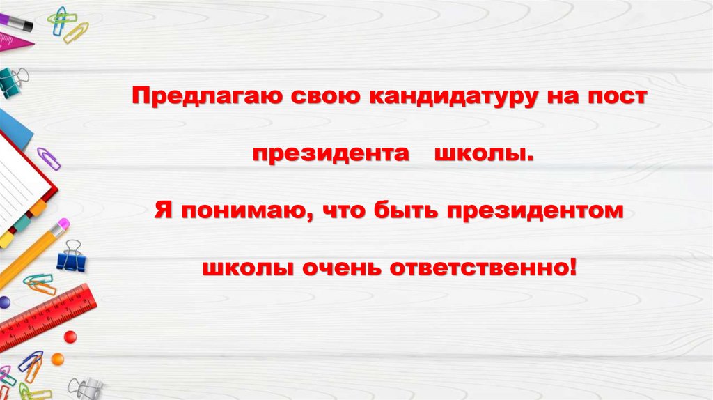 Предлагаю свою кандидатуру на постпрезидента школы.