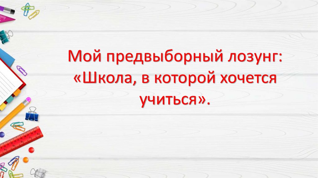 Мой предвыборный лозунг:«Школа, в которой хочется