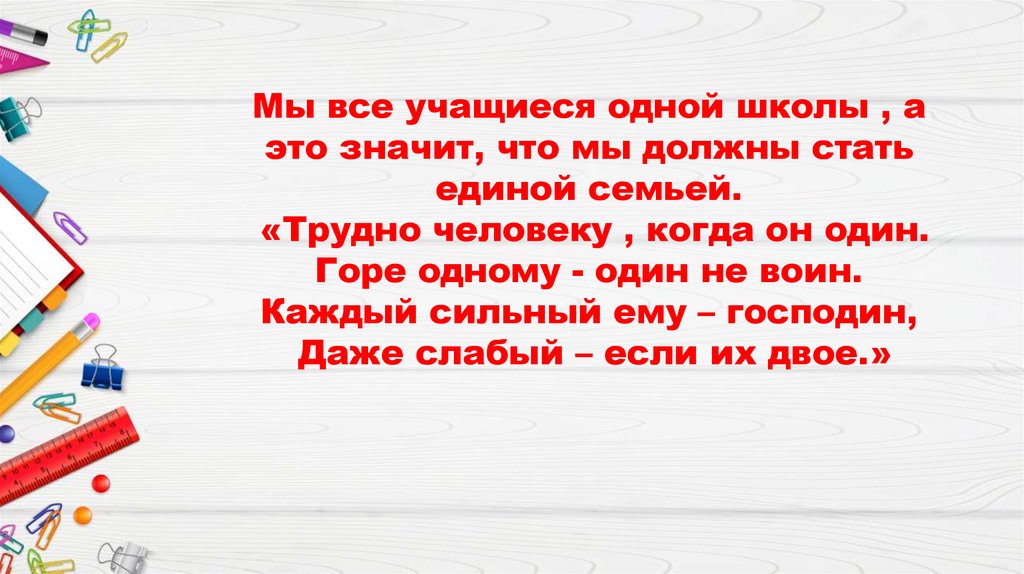 Мы все учащиеся одной школы , аэто значит, что мы должны стать