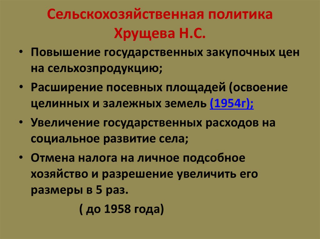 Сельскохозяйственная политикаХрущева Н.С.