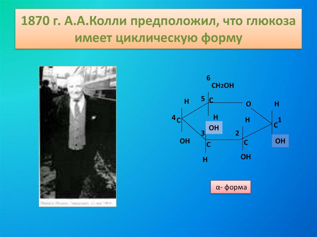1870 г. А.А.Колли предположил, что глюкозаимеет циклическую форму