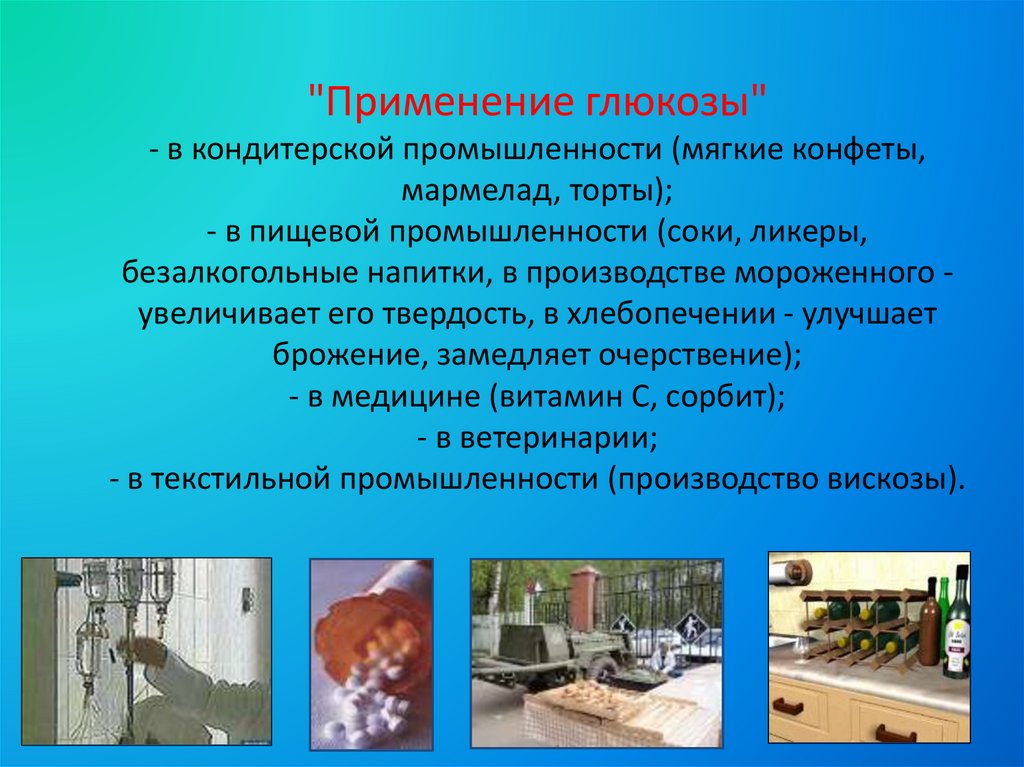 "Применение глюкозы"- в кондитерской промышленности (мягкие конфеты,