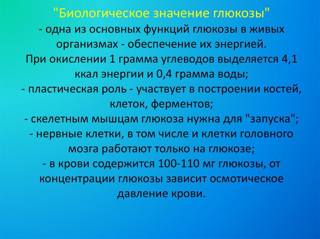"Биологическое значение глюкозы"- одна из основных функций глюкозы в живых