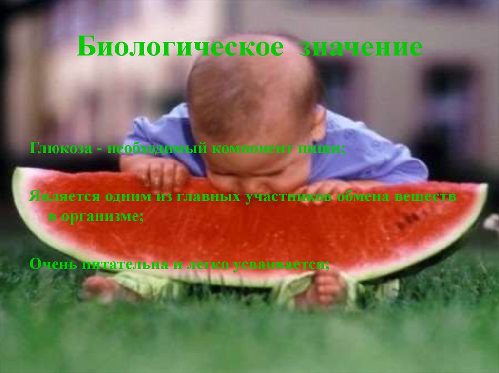 Биологическое значениеГлюкоза - необходимый компонент пищи;