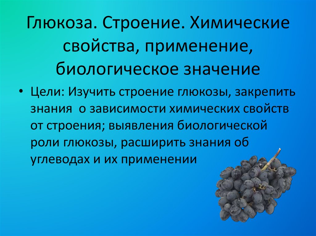 • Цели: Изучить строение глюкозы, закрепить
