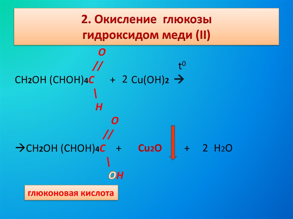 2. Окисление глюкозыгидроксидом меди (II)
