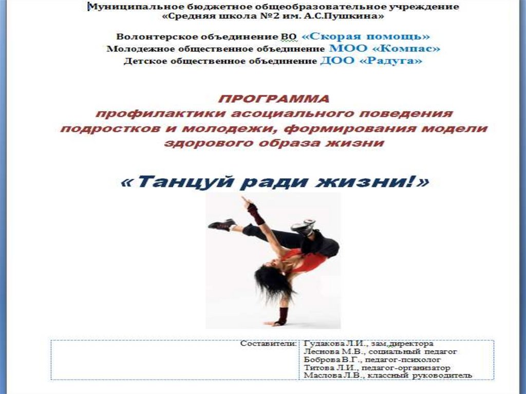 ребят к занятиям танцами привлечь их внимание к здоровому образу жизни.