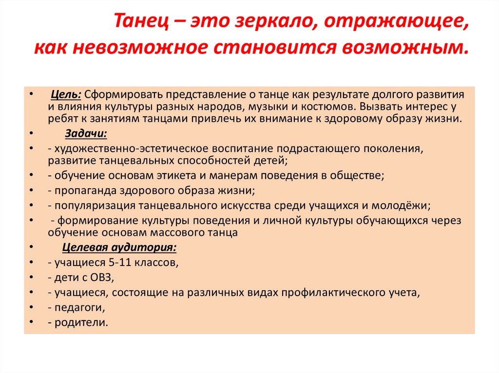 Танец – это зеркало, отражающее,как невозможное становится возможным.