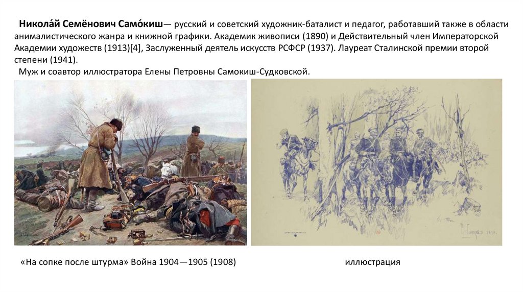 ́ Семёнович Само́киш— русский и советский художник-баталист и педагог, работавший также в областиНиколай