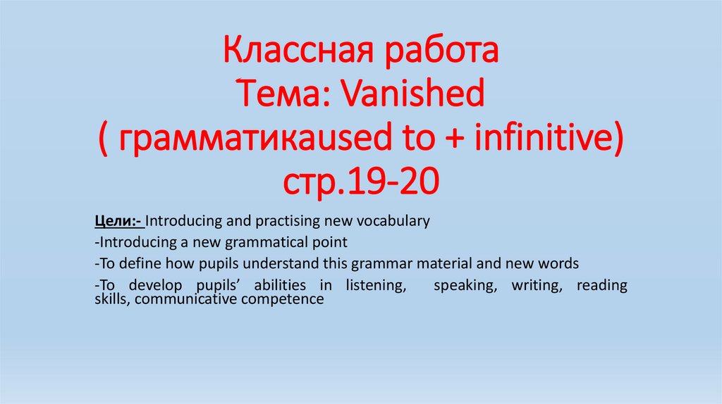 Vanished ( грамматикаused to + infinitive)