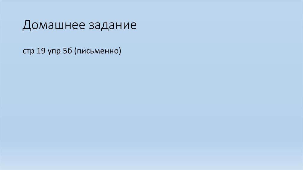 Домашнее заданиестр 19 упр 5б (письменно)