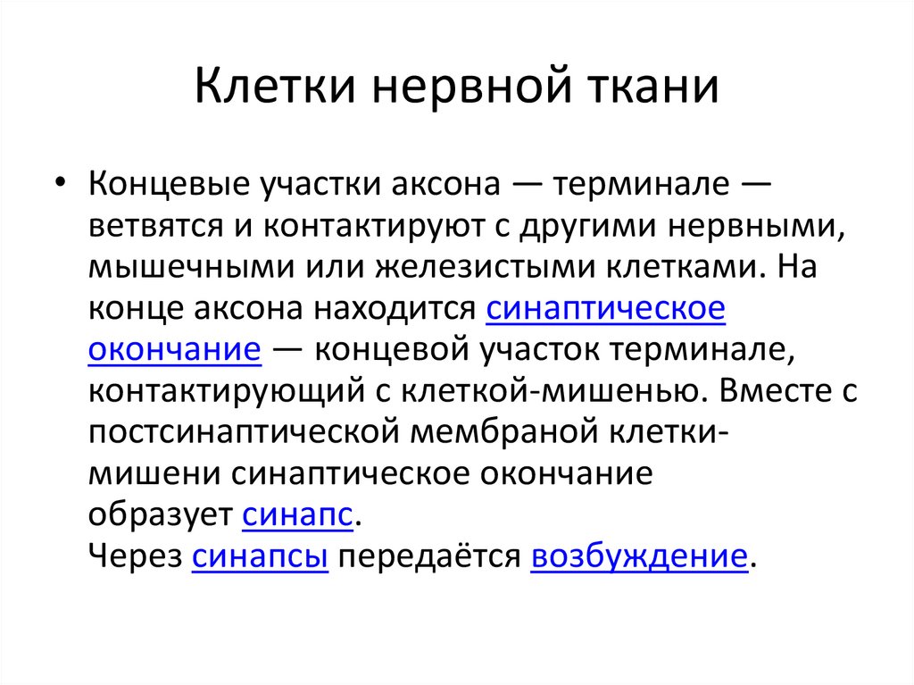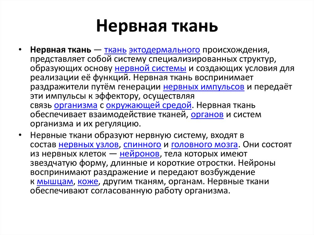 к мышцам, коже, другим тканям, органам. Нервные ткани