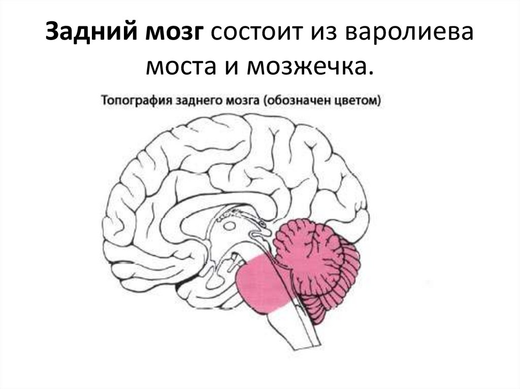 Задний мозг состоит из варолиевамоста и мозжечка.