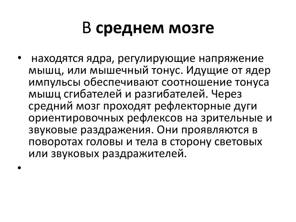 В среднем мозге• находятся ядра, регулирующие напряжение