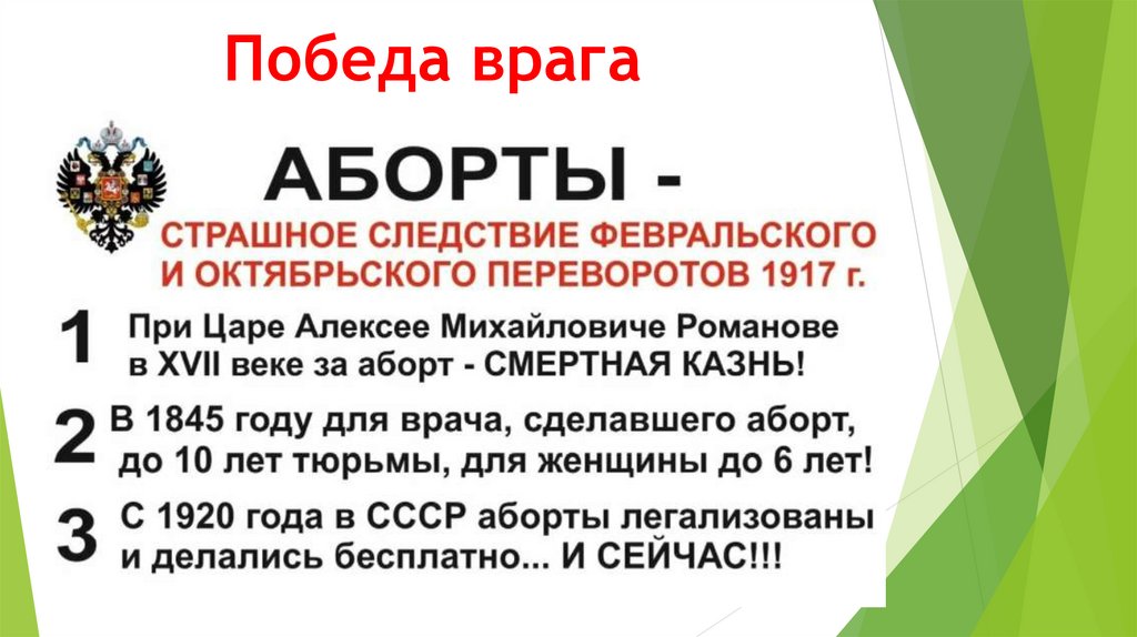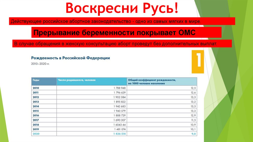 Воскресни Русь!Действующее российское абортное законодательство - одно из самых мягких в мире.