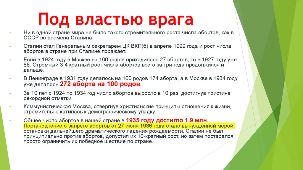 Под властью врагаНи в одной стране мира не было такого стремительного роста числа абортов, как в