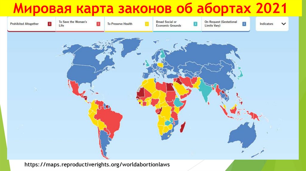 Мировая карта законов об абортах 2021https://maps.reproductiverights.org/worldabortionlaws