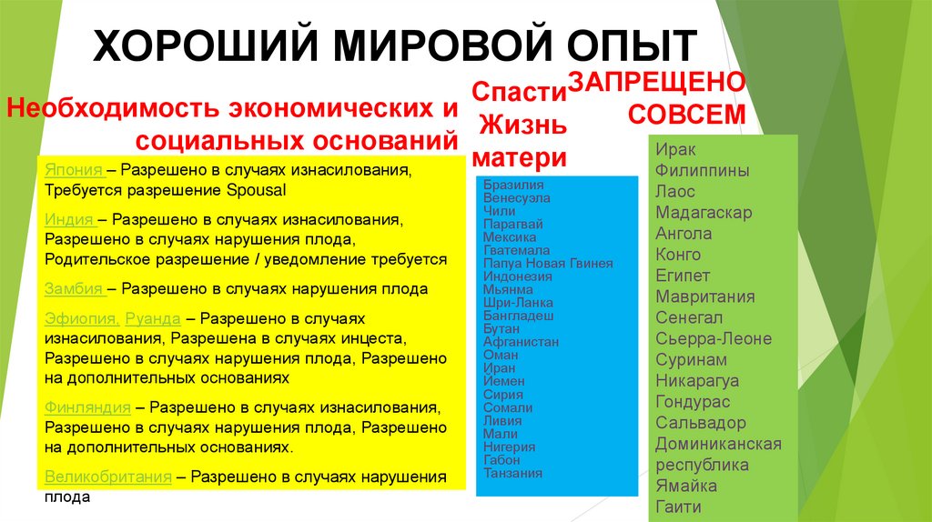 рядом дополнительных условий и ограничений: Разрешено в случаях изнасилования,