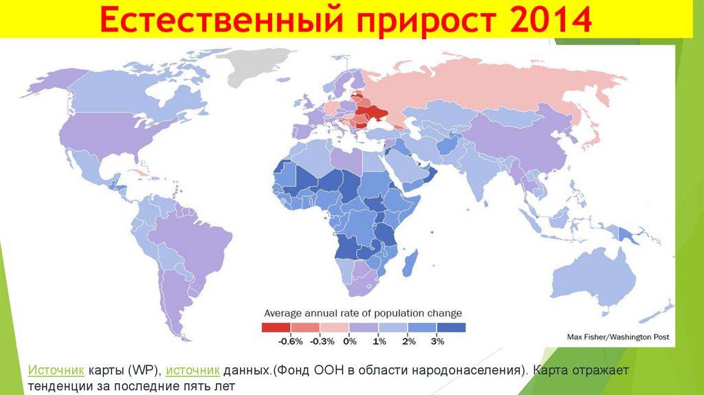 Естественный прирост 2014Источник карты (WP), источник данных.(Фонд ООН в области народонаселения). Карта отражает