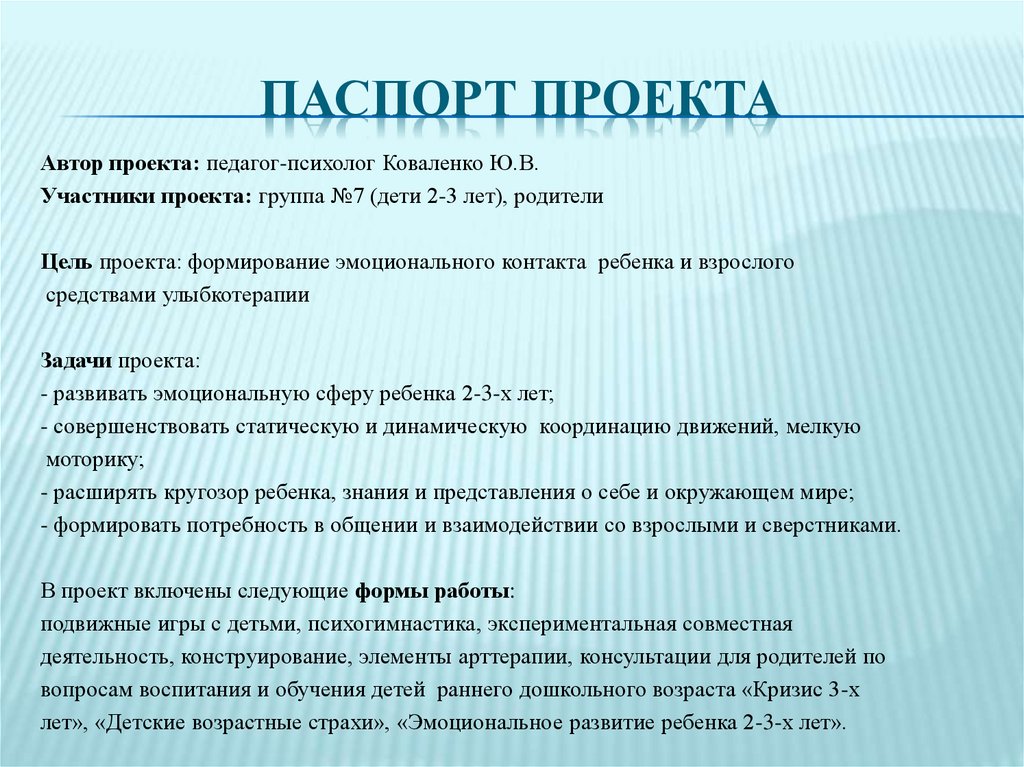 ПАСПОРТ ПРОЕКТААвтор проекта: педагог-психолог Коваленко Ю.В.