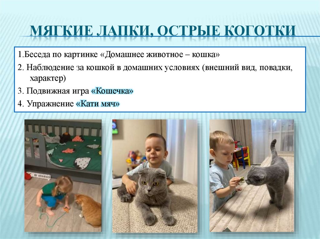МЯГКИЕ ЛАПКИ, ОСТРЫЕ КОГОТКИ1.Беседа по картинке «Домашнее животное – кошка»