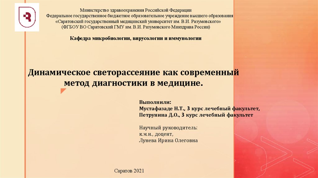 (ФГБОУ ВО Саратовский ГМУ им. В.И. Разумовского Минздрава России)