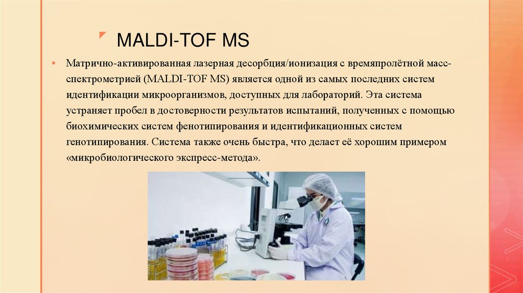 Матрично-активированная лазерная десорбция/ионизация с времяпролётной массспектрометрией (MALDI-TOF MS) является одной из самых последних систем