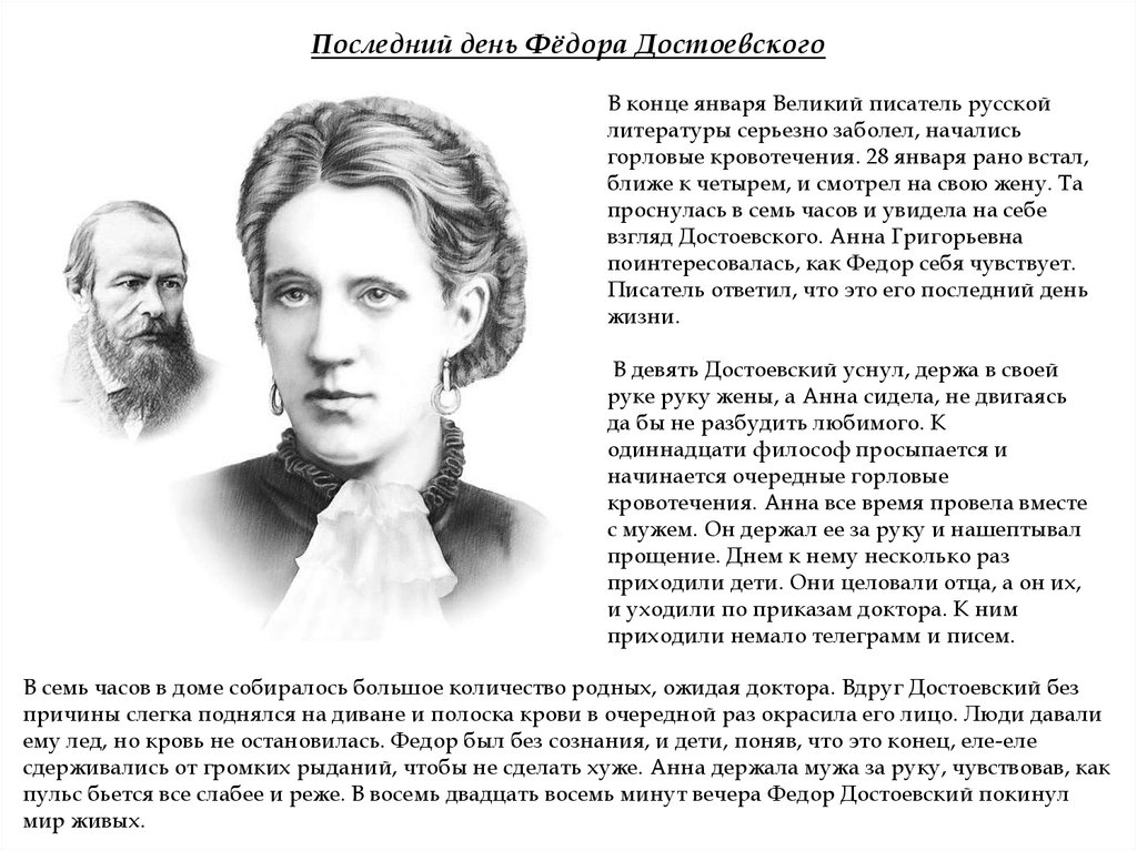 Последний день Фёдора ДостоевскогоВ конце января Великий писатель русской