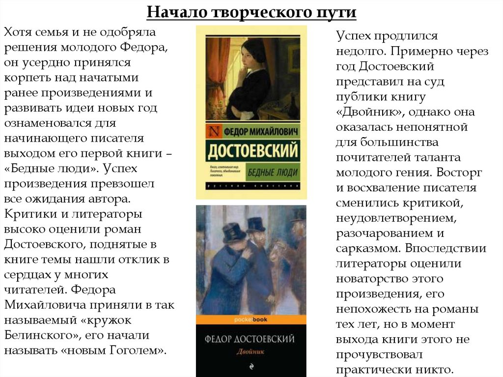 начиная с его первого опубликованного романа «Бедные люди».